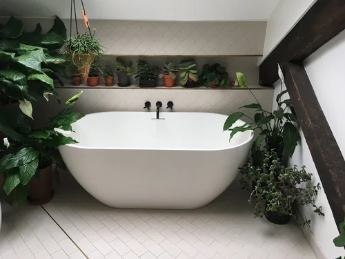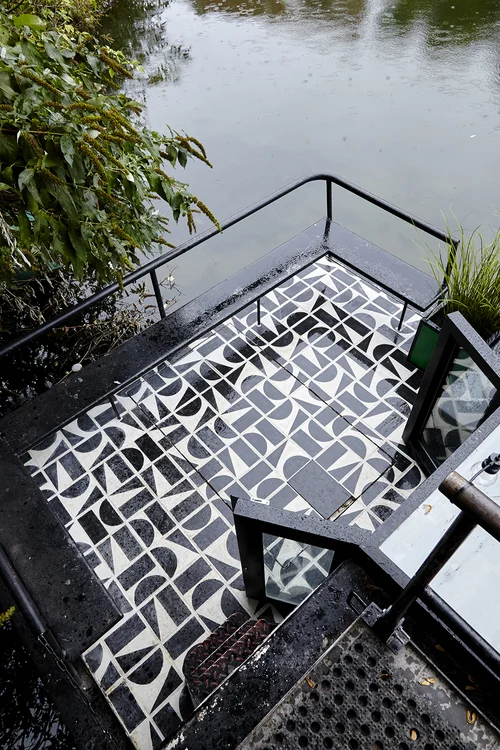 Studio Rhonda’s interest in biophilic design principles is evident in the abundance of greenery. As a pet product company, Omlet has always been open to nature, with office cats, chickens and rabbits always on hand as resident product testers, so there was already a precedent for bringing the natural world into the workspace. Substantial planters in terracotta and Corten steel are full of trees and plants, making the most of the lofty ceiling heights and the sunshine from the skylights. These not only visually soften the edges of the workspace, they also help absorb sound, clean the air, and contribute to physical and mental wellbeing.